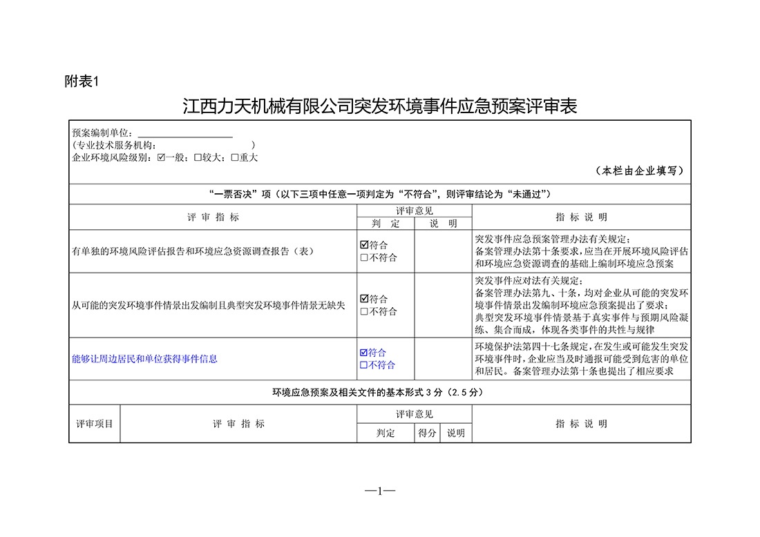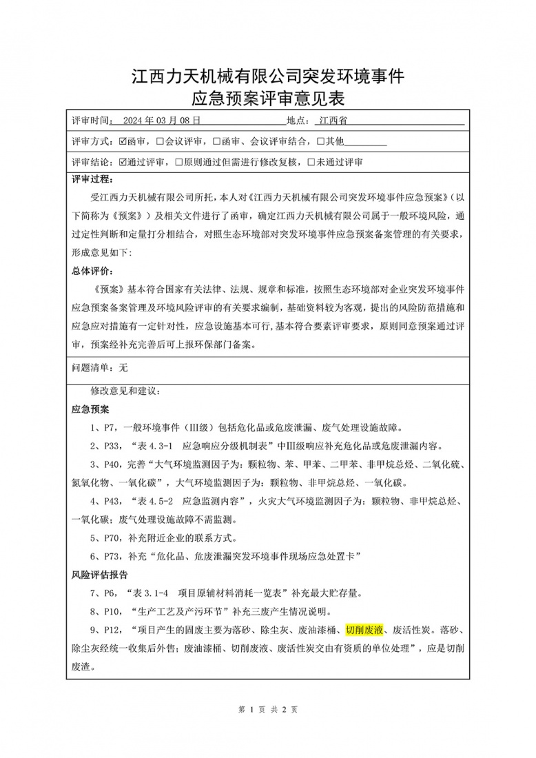 江西力天機械有限公司環(huán)境應急資源調查報告
